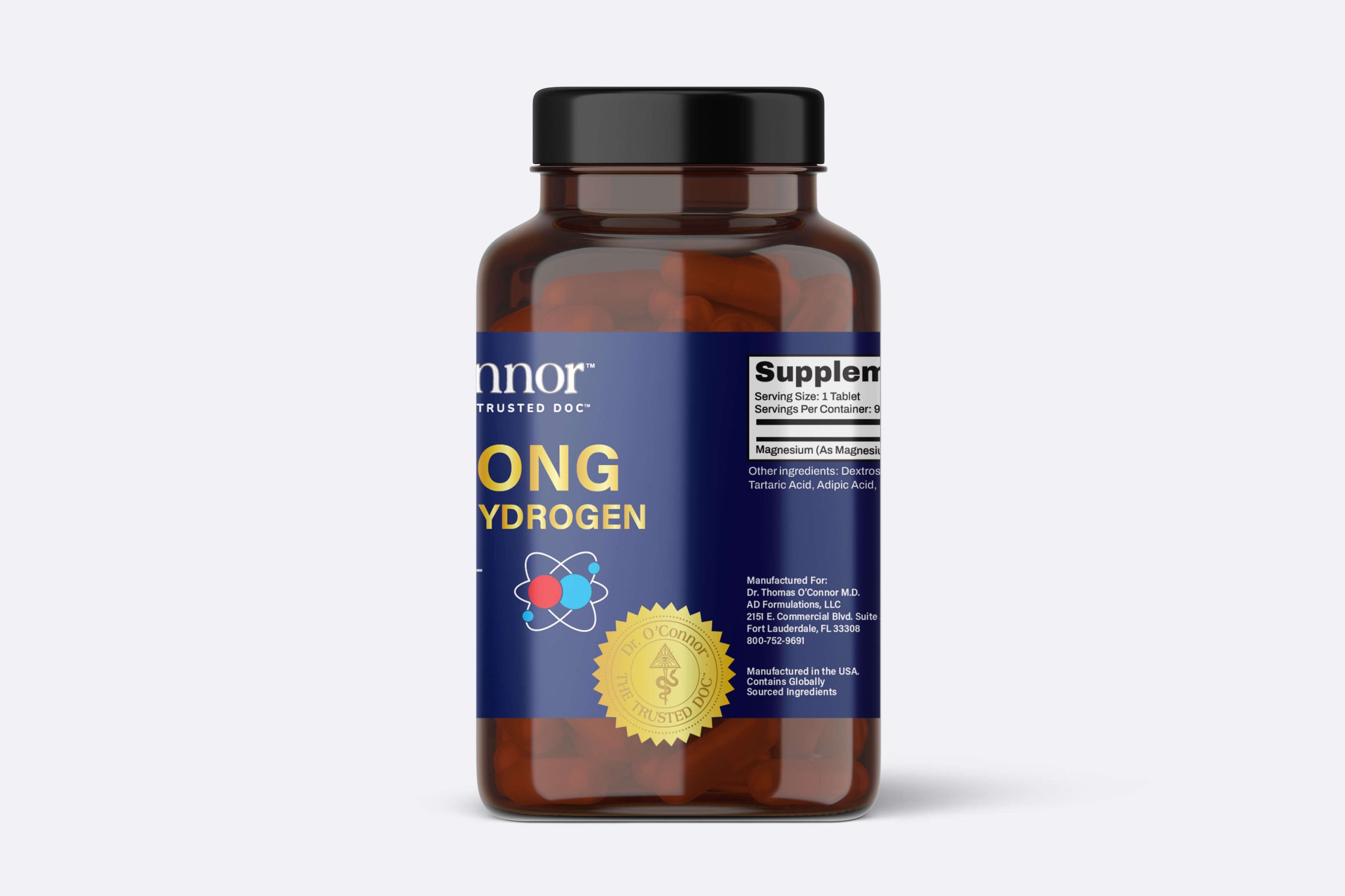 “Revitalize your body at the cellular level with H2 STRONG, formulated by Dr. Thomas O’Connor, “The Trusted Doc”, to deliver powerful antioxidant support, enhanced energy, and everyday wellness. Drawing on his clinical experience and commitment to science-based health solutions, Dr. O’Connor created this advanced molecular hydrogen formula to help support the body’s natural defense and recovery systems. Each tablet provides up to 8 ppm of molecular hydrogen along with 80 mg of magnesium, offering a potent and natural daily boost.