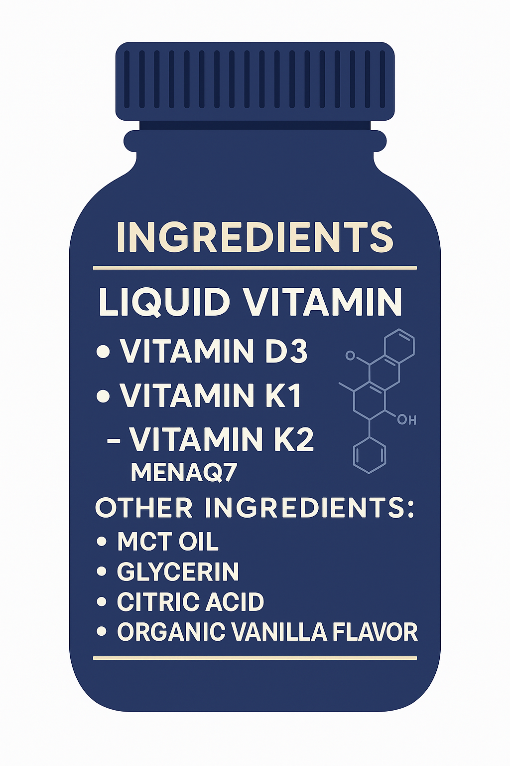 Vitamin D3 (as cholecalciferol), Vitmin K1 (as phylloquinone), Vitamin K2 (as menaquinone – 4 [MK-4], Vitamin K2 (as menaquinone – 7 [MK-7] )MenaQ7)
